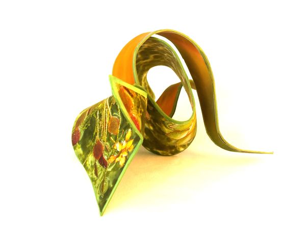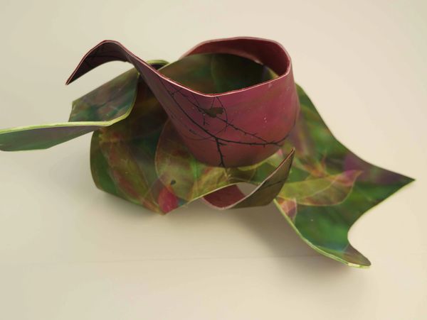 Last year I began working with a material that is malleable when wet. Since my inkjet prints would run if wet, I had to figure out how to first create the shapes, dry them, and then adhere the images.